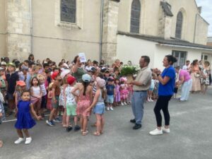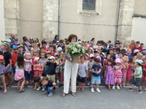 Samedi matin 21 juin 2025 L’école du Marais Bleu souhaite bonne retraite à Marie-Christine et la remercie chaleureusement.